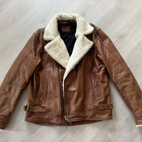 Tøff herre skinnjakke i brun-sort