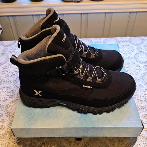 Traxole piggsko i størrelse 38 med svart farge. Egnet for fotturer og glatt is .- designet for å gi støtte og komfort under turaktiviteter. Sender gjerne med posten bring / PostNord! - Ikke med fiks ferdig!