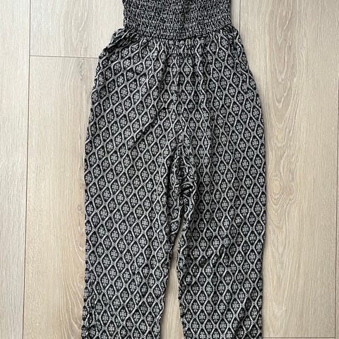 Hollister jumpsuit i størrelse XS for damer. Plagget er flerfarget med røde og hvite striper. Jumpsuiten har knappelukking foran og kort erm og ben.