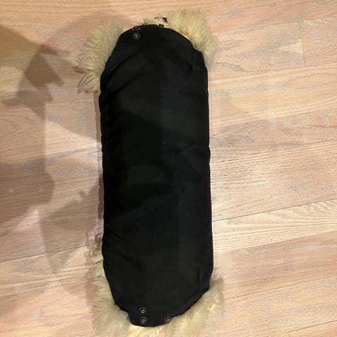 Selger en pent brukt håndvarmer/håndmuffe laget av myk deilig saueull. Denne kunne jeg ikke klart meg uten om høsten og vinteren, perfekt for lange trilleturer.