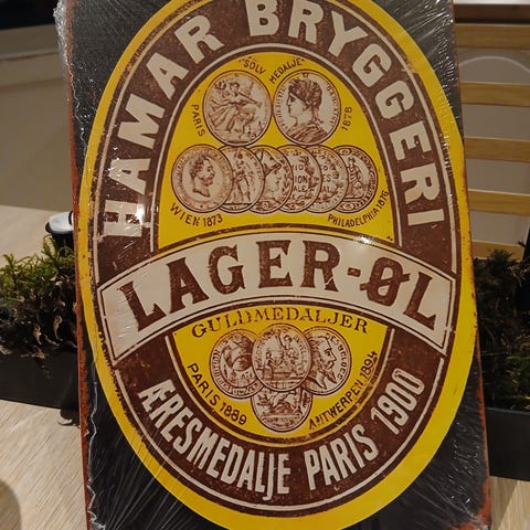 Hamar bryggeri pilsner-øl metalskilt retro repro selges