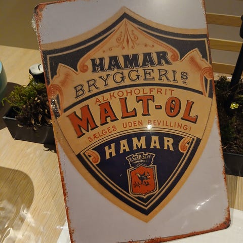 Hamar Bryggeri pilsner-øl metalskilt repro retro selges