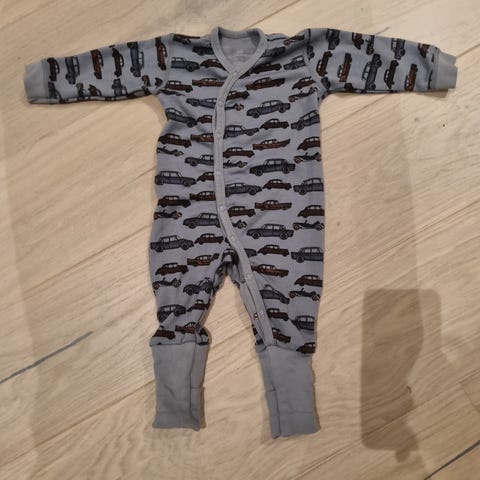 Nøstebarn ull heldress i ca størrelse 62, brun farge, designet for unisex bruk. Laget av 100 % ull, egnet for å holde barnet varmt. Heldressen har knappelukking foran og brodert sauemotiv på brystet.
