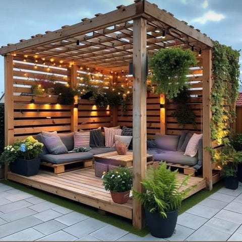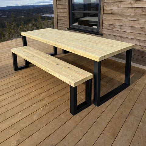 Dem fleste som kjøpte dette av meg sist sommer skulle ha dette på hytta det som er fint med dette er at det lages i impregnert materiale så dette kan stå ute året rundt trenger ikke pakke det bort i boden :) må ikke behandles da det er impregnert og det blir veldig tungt så det flytter ikke på seg om det kommer en vindkule:)
