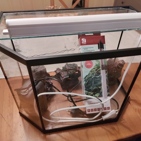 Pent brukt akvarium selges. Pumpe uten svamper, div pynt, sug for å bytte vann, pluss litt annet følger med.
