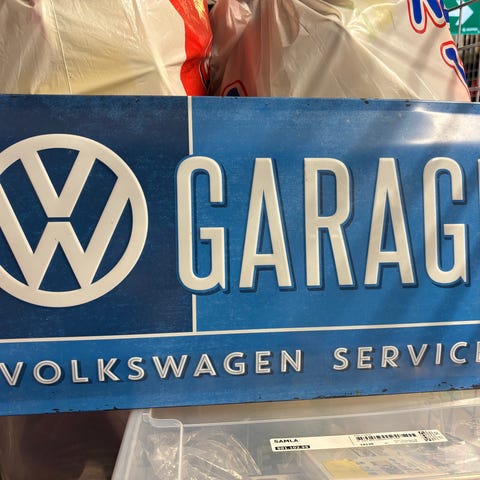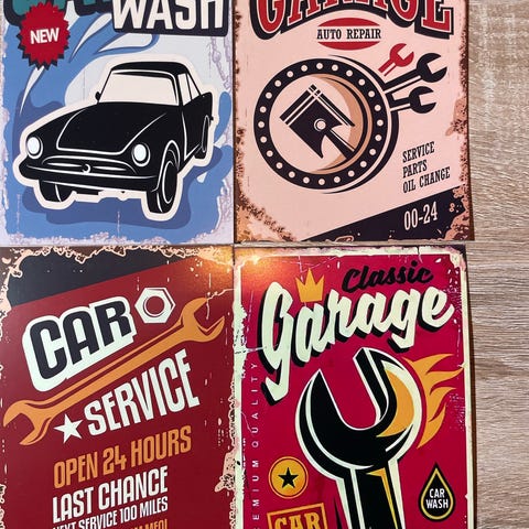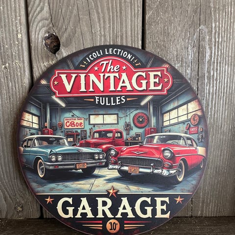 Classic Garage metallskilt med vintage design. Skiltet har farger i rødt, svart og gult, og viser et motiv med en skiftenøkkel og tekst. Egnet til dekorasjon i garasje eller verksted.