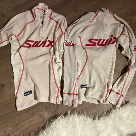 To kortermede supertrøyer fra Swix, begge kortermede. Den sorte er med windstopper foran. Kortermede er perfekte som ekstratrøye når det er kaldt under trening uten å få mer på armene, og til sommertrening eller kun som skift etter trening.