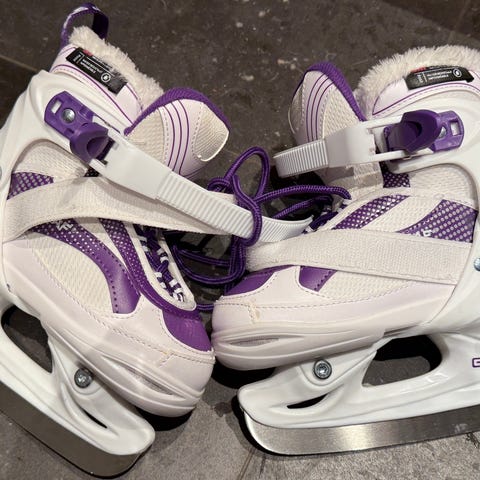 Gode og varme skøyter til salgs. Det står ikke størelse på skøytene men innvendig mål er 19 cm. Datteren mi brukte de med skostørrelse 29/30.