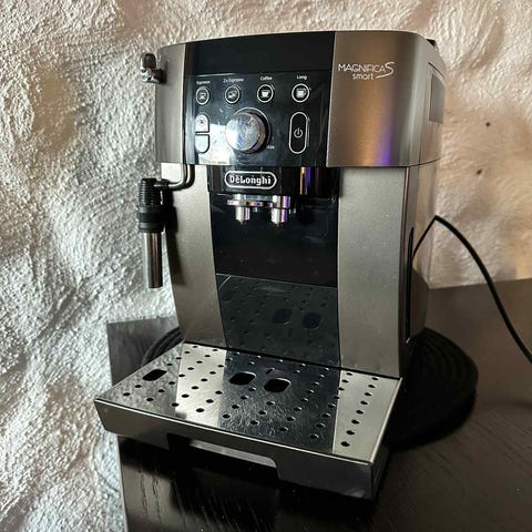 Jeg selger en DeLonghi Magnifica S kaffemaskin, lite brukt, i veldig god stand, med små bruksmerker.