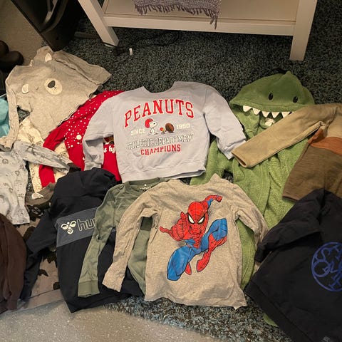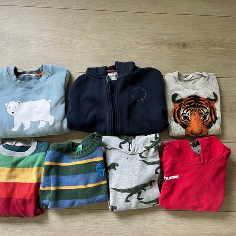 11 kule gensere og en dinosaur morgenkåpe i størrelse 110 (5-6år)