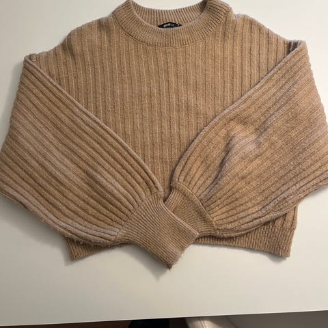 Gina Tricot strikket jakke/genser med glidelås i beige farge, størrelse XS. Designet for kvinner.