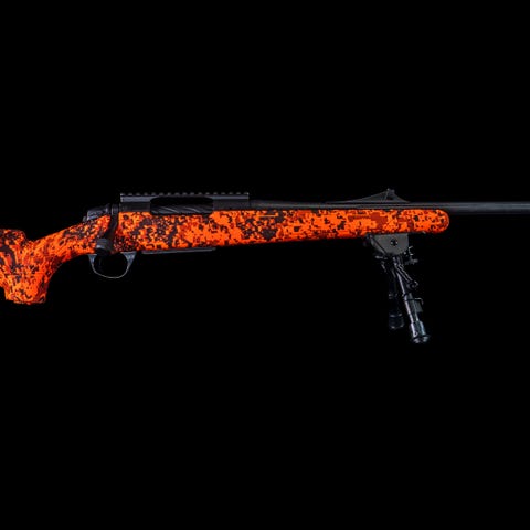 Karbonstokk og flutet sluttstykke. Låskasse og løp er overflatebehandlet med cerakote for å tåle det meste av uvær.