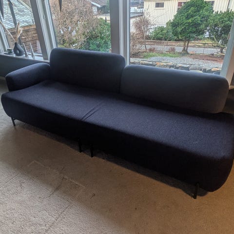 Sittekomforten er god med stabile puter og solid utførelse av høy kvalitet. Det finnes noe kloremerker på høyre side, som er synlige ved nærmere ettersyn, men som ikke har betydning for bruk eller komfort.