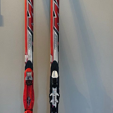 Madshus Carbon Skate Cold 180 cm skøyteski med bindinger selges. Brukt av gutt på 165 cm og 50 kg. Litt slitasje langs kantene som bildene viser, men fungerer helt fint. Må hentes på Kjelsås i Oslo.