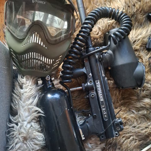 Med markøren følger det lufttank, magasin, bærestropp, løpsrenser, hette til løpet når den ikke er i bruk og slange så tanken kan bæres andre plasser enn fast i markøren for enklere manøvrerbarhet.
