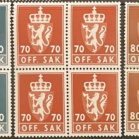 Fine 4-blokker i blå fiolett og rød fiolett farge. Sk= 120kr