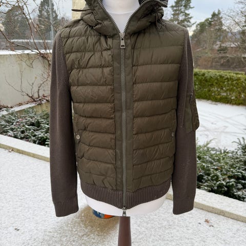 Moncler Vinterjakke i størrelse S, svart farge og laget av dun. Jakken er designet for menn og egner seg til bruk i kaldt vær.