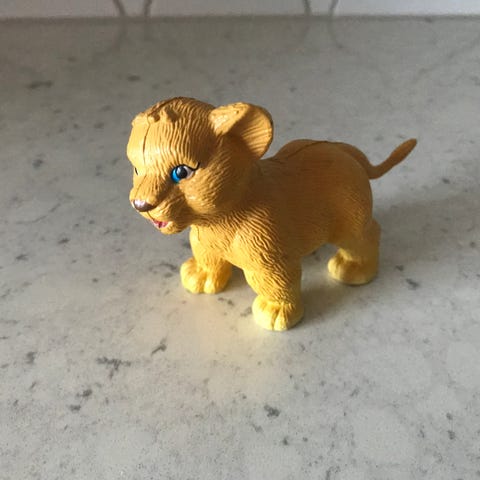 Løvenes Konge Simba bamse, elsket høyt og inderlig i ca fem minutter fra den ble kjøpt - til så å bli glemt. Ligget i en skuff siden og ønsker seg en ny venn. Fremstår ny.
