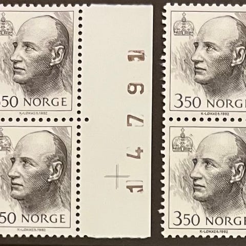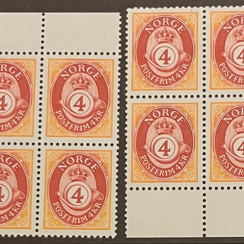 Norge 4-blokker postfrisk, nk Tj. 133 x+y **, 2 kr på begge papirtyper