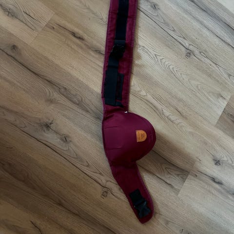 Plasser denne rundt livet og la barnet sitte på puten. Du vil da bære vekten av barnet på hoften i steden. Praktisk sak, men veldig lite brukt hos oss.