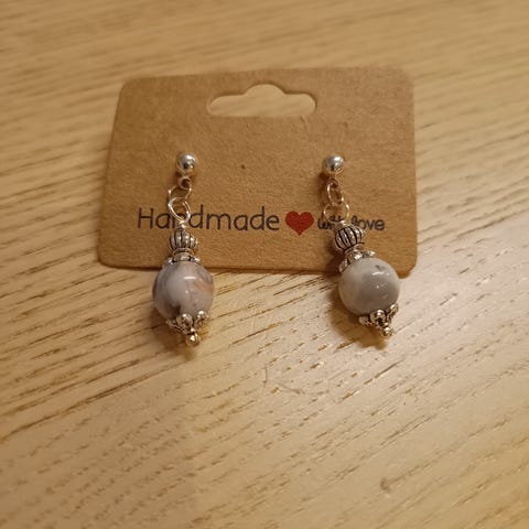 Øredobber for dame dekorert med flerfargede steiner i ulike former og størrelser.