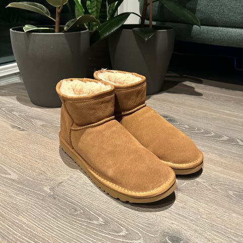 Myke og varme UGGs i klassisk brun modell. Komfortable boots som passer perfekt til høst og vinter, og enkle å style til hverdagsbruk. Materialet inni er muligens en blanding av syntetisk og ull, så ikke 100% ull fôret inni, men holder fortsatt varmen veldig godt! 🔥