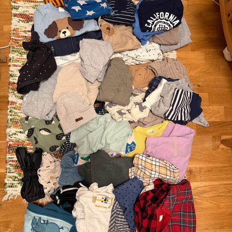 Helt og pent - det grønne i fleece er i 86/92 ellers er resten i 92.