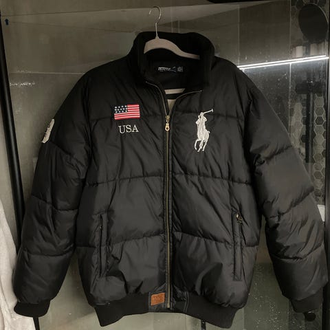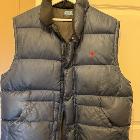 Parajumper til herre selges. Men har et lite svimerke på framsiden. Og regnet litt i den ene lomma, ellers fin.