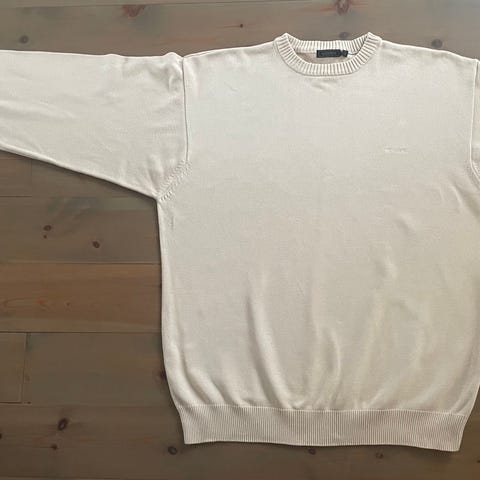 Er en herregenser i XL, Brukt den selv som oversized genser til dame. Er såpass lang så har brukt den med tights.