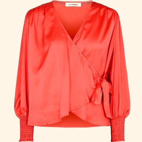 Co'Couture Omari Leo Bluse i størrelse L. Blusen er grønn med mønster og laget av 100 % polyester. Den har lange ermer med smock-detaljer ved mansjettene.