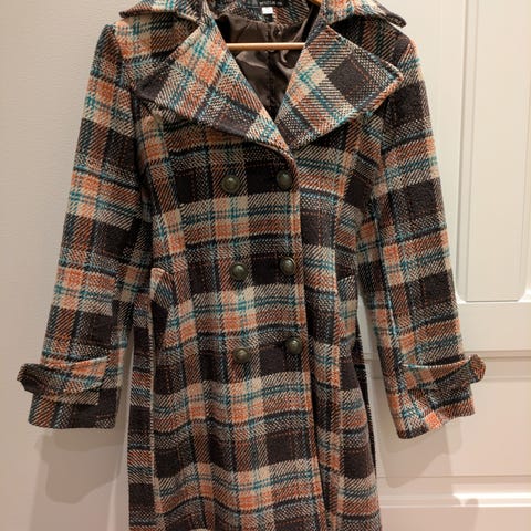 Jakke, oliven grønn, st. XS-S, det står 38, men kjøpt i utenland. Modellen på bildet er 164 og st. S-M.