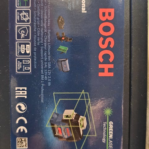 Bosch Professional GLL 3-80 C med BT, 3x360 graders linjelaser inkludert 250 Stativ og 12V 2A batteri 1stk.