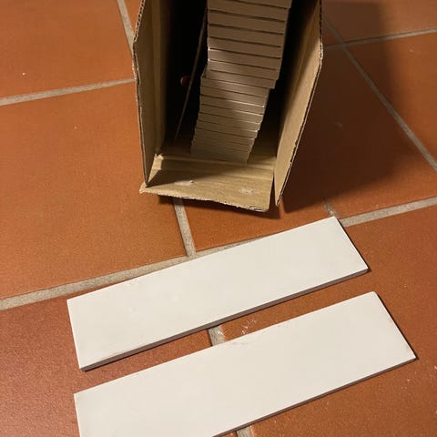 Vi har brukt disse flisene på kjøkkenvegg og har noen til overs som vi vil selge.