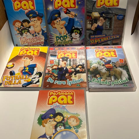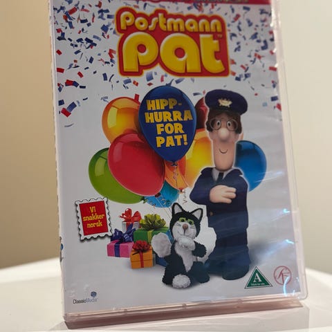 Postmann Pat DVD med tittelen På Dinosaurjakt. Inneholder episoder fra serien med Postmann Pat og hans eventyr.