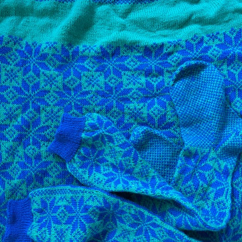 Nystrikket ullgenser i islandsk ullgarn (lettlopi).