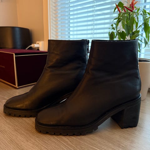Ingen merker på utsiden, ser helt nye ut, men på innsiden av skoen er det noen subbe-merker, se bilder. Selges derfor billig, som de er, pga jeg rydder i fullt skoskap