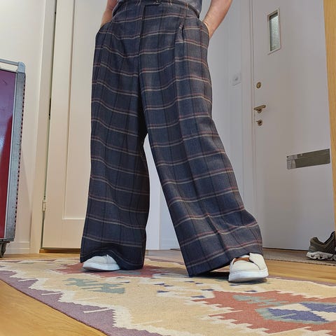 Selger et par W&P DETAILED TROUSERS fra Mahu Official. Kun testet. Laget i lett og luftig bomullsblanding. Høy midje med dekorativ kant, baklommer med stilige detaljer og frontplissering som gir et elegant uttrykk. Komfortable og moderne i passformen.