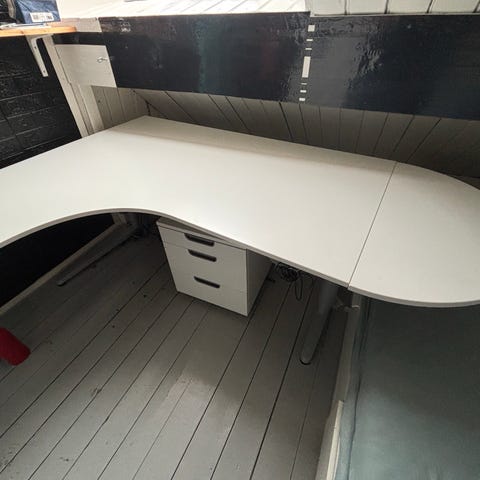Du får en sjenerøs arbeidsflate og en smart løsning til å holde orden på ledninger på undersiden.