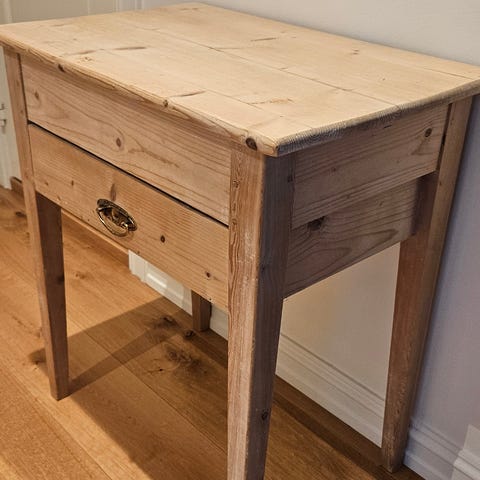 Lite fint teakbord - sidebord med en skuff og en hylle under.