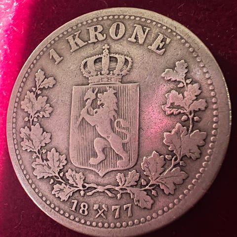 1 krone 1877, Norge, Sølvmynt, Se bilder