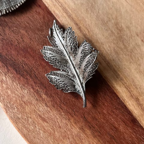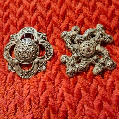 Selges for 95kr pr stk. Flott filligan arbeid og sølvbelagte brosjer.
