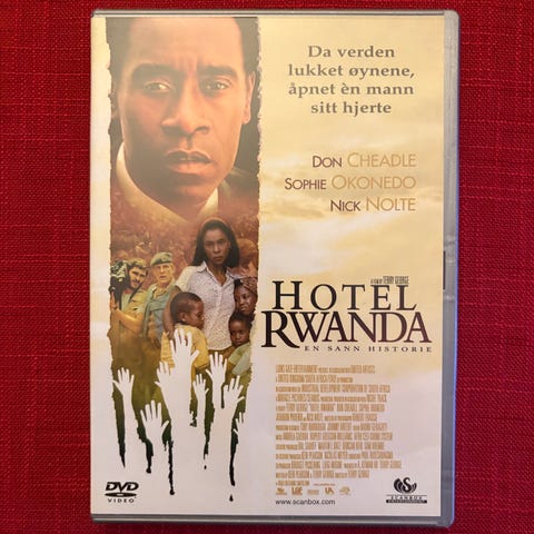 DVD-utgave av filmen Hotel Rwanda. Inneholder filmen med tema basert på sanne hendelser. Format: DVD.