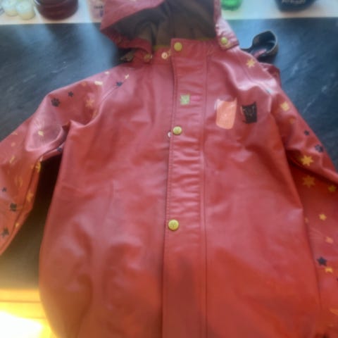 Noen flekker på det ene siden av bukse og på glidelåsen. Antydning til misfarginger baksiden. Ellers i god stand og vanntett 😊