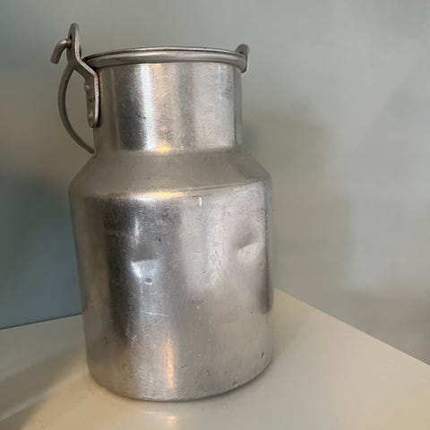 Vintage melkespann i aluminium fra V. Bäcklunds Metallvarufabrik, Skellefteå.