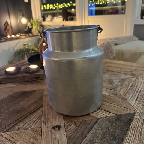 melkespann, aluminium, Skellefteå, svensk vintage, Bäcklund, gammelt spann, retro, landlig, hytte, dekor