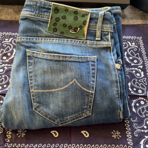 Jacob Cohen jeans i modellen NICK/622. Selges da den ikke passer meg lenger i størrelsen desverre. Den har ingen store skader eller merker! I skrittet på buksen er det heller ikke noe slitasje såvidt jeg ser 😄