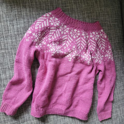 Myk alpakkaull. Mange fine detaljer med knapper og glitter. Ikke like lett å få frem på bildene.