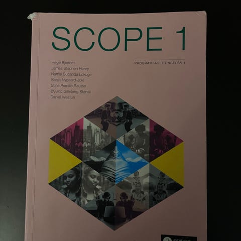 Selger Scope 1 etter at jeg har brukt den ett semester da jeg tok faget Engelsk 1. Boken er i fin stand, med noen merker. Nypris 1049kr.