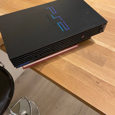 Sony PlayStation 2 spillkonsoll. Svart farge, standard størrelse og design for PlayStation 2. Egnet for avspilling av PlayStation 2-spill. Og Nintendo 64 konsoll begge er orginalt fra gammelt av selges begge uten kabler