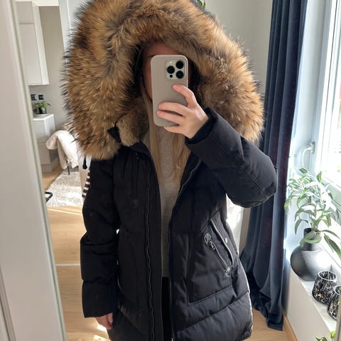 Cedrico Monet i størrelse L, farge grønn. God og varm dunjakke. Jakken har hette med pelsdetalj og flere lommer. Hetten kan taes av